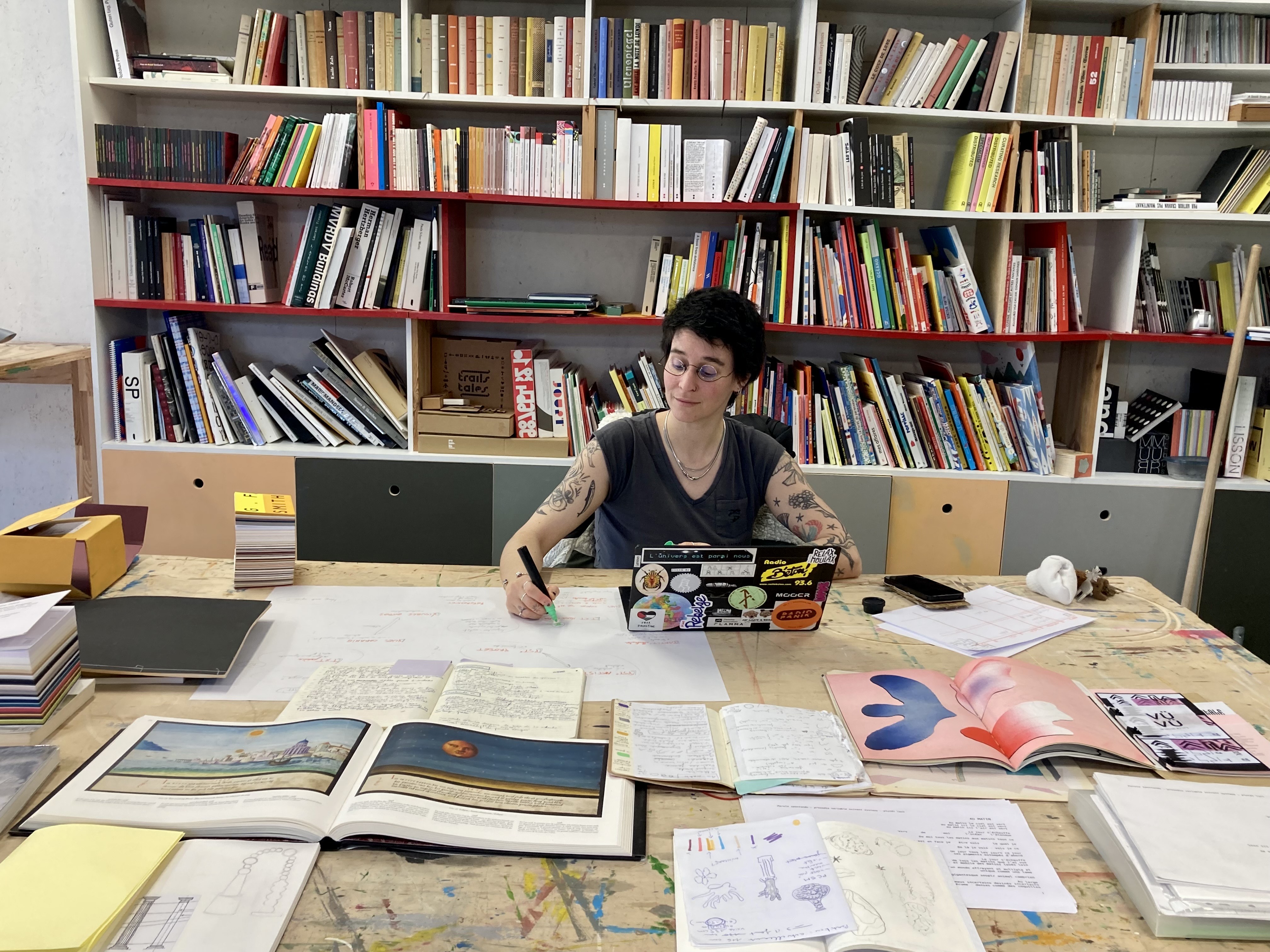 Axelle Glé et moi-même préparons un livre d'artiste sur le projet Exhale Caudale avec La Maison des Editions à Pau. Merci à Claire Colnot de nous accompagner dans cette aventure. Projet 2026 en riso ! Poésie textuelle et visuelle en cours d'invention... Merci au Bel Ordinaire de nous accueillir pour cette session de travail ensemble.